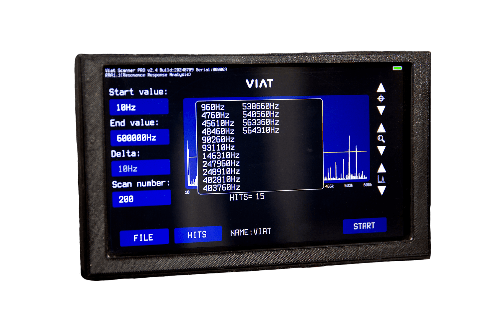 Mit Hilfe des Scanner PRO können wir uns ein genaues Bild davon machen, welcher Frequenzbereich untersucht werden sollte. Das Gerät überträgt die gemessenen Daten an den VIAT PROFESSIONAL PRO Generator, womit das passende Frequenzprogramm identifiziert wird.